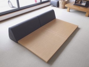 ●フローリングの床用の置きタタミは各種ありますが、この 和奏 の特徴は背もたれクッションが周囲にある、ということです。